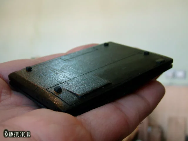 این لپتاپ هم در مقیاس یک پنجم جزء مجموعه لوازم مینیاتوریست که اخیراً ساختهام. در ساخت آن سعی شده جزئیات مدل خواسته شده تا حد امکان پیادهسازی شود.