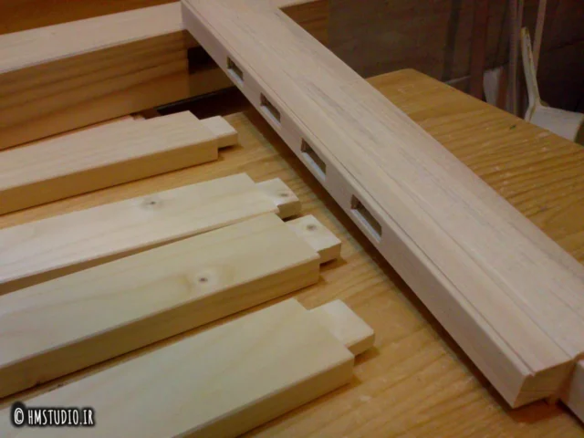 تمام اتصالات اصلی این میزها فاق و زبانه است. در مجموع ۳۲ اتصال فاق و زبانه در هر میز به جز اتصالات صفحات.